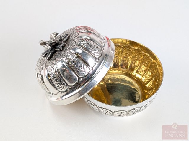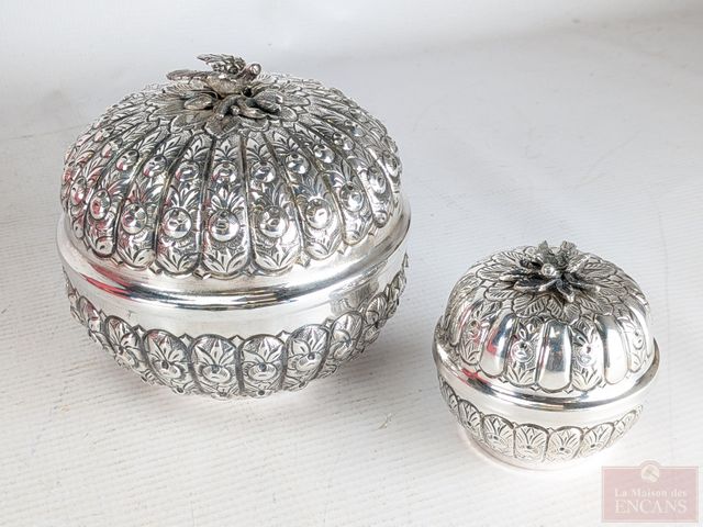 Deux contenants russes en argent 800 avec intérieur vermeil, le plus grand mesurant 5 pouces, dans leur coffret