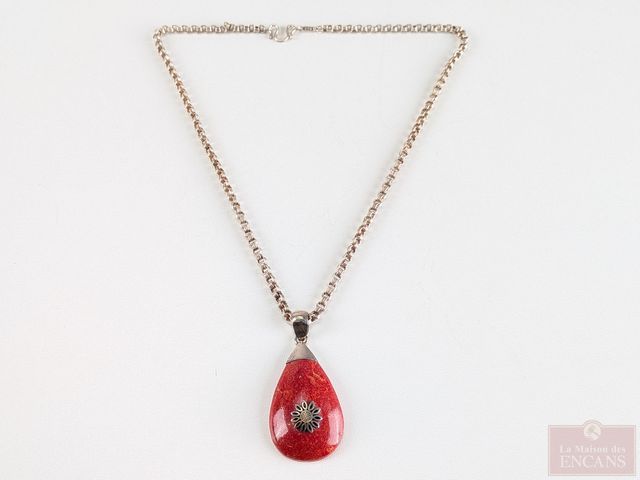 Lot # 102 - Pendentif et chaine en argent, la chaine mesurant 18 pouces de longueur