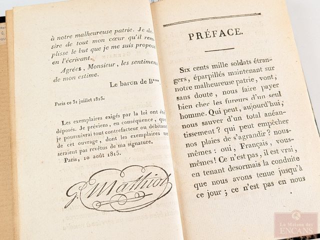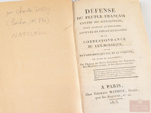 Lot # 223 - Livre ancien Défense du peuple français de Charles Doris, édité à Paris en 1815 et mesurant 6 pouces de hauteur SOLD