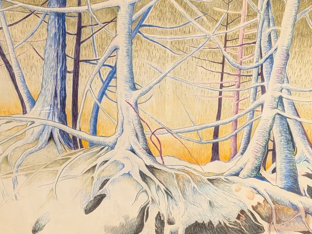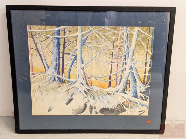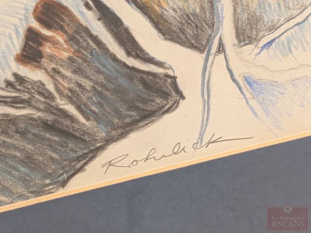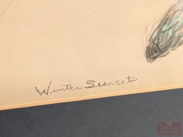 Lot # 131 - Morrie ROHRLICK- Dessin au crayon de bois signé à la mine, mesurant 20x26 pouces et titré Winter Sunset SOLD