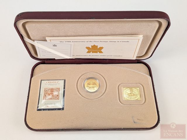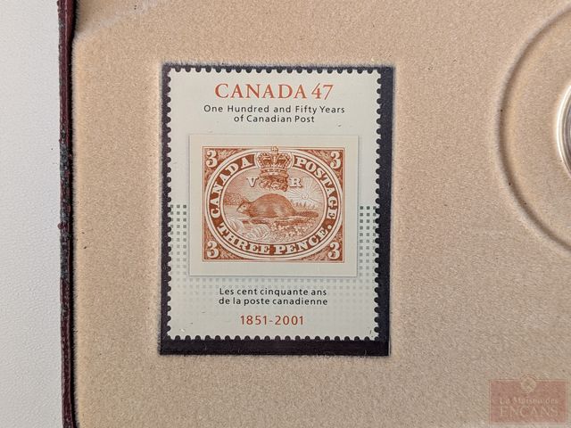 Pièce canadienne de trois sous en argent sterling plaquée or 24k, avec timbre, dans son coffret avec certificat