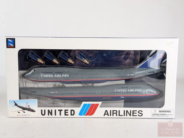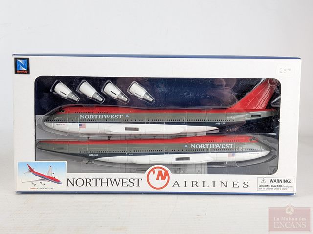 Lot de modèles-réduits d'avions de ligne, dont North West Airlines, United Airlines, Delta Airlines et American Airlines, mesurant 10 pouces de longueur, dans leurs boites d'origines