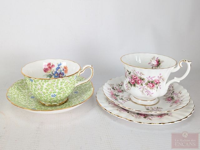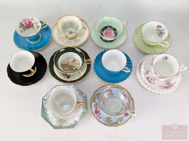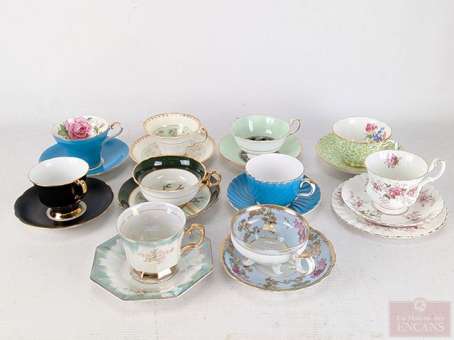 Lot de tasses et sous-tasses en porcelaine, dont Regency Aynsley, Hammersley, porcelaines anglaises, porcelaines japonaises et autres