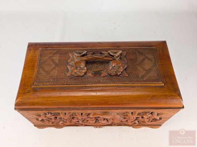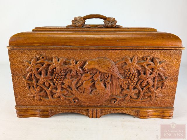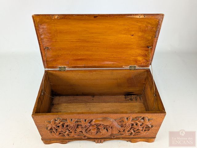 Lot # 167 - Superbe coffre art-populaire sculpté sur bois de pin, circa 1940, mesurant 16 pouces de largeur SOLD