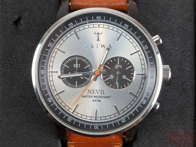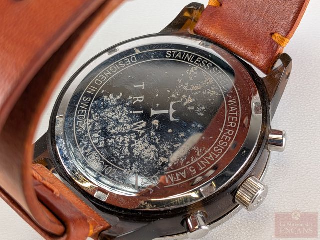 Lot # 96 - Montre Triwa NEAC102 chronographe design suédois, mouvement au quartz mesurant 45.3 millimètres avec sa couronne signée, avec son bracelet d'origine en cuir et document dans sa boite d'origine