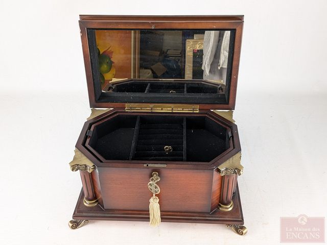 Lot # 155 - Coffre à bijoux en bois et laiton, mesurant 15 pouces de largeur SOLD