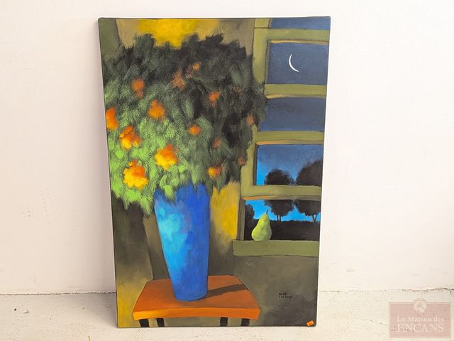 René LALONDE- Huile sur toile signée, datée 2001, mesurant 36x24 pouces et titrée Douceur de vivre