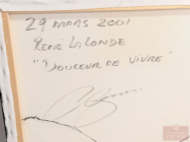 Lot # 143 - René LALONDE- Huile sur toile signée, datée 2001, mesurant 36x24 pouces et titrée Douceur de vivre SOLD