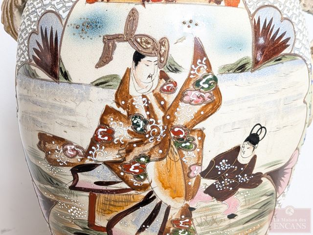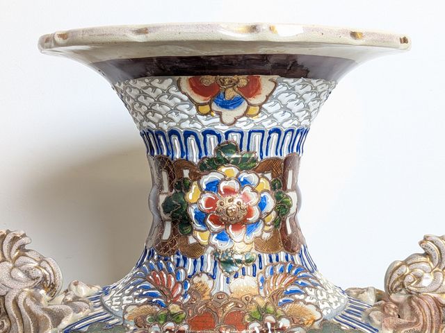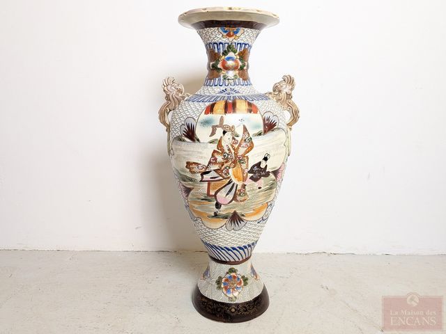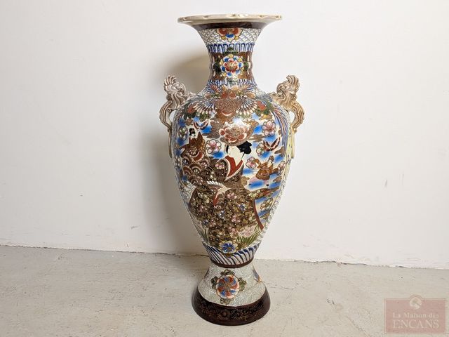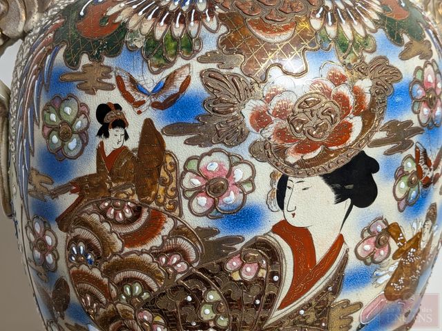 Lot # 159 - Haut et impressionnant vase japonais Satsuma en porcelaine, entièrement peint à la main, datant du 19eme siècle et mesurant 32 pouces de hauteur, en excellente condition SOLD