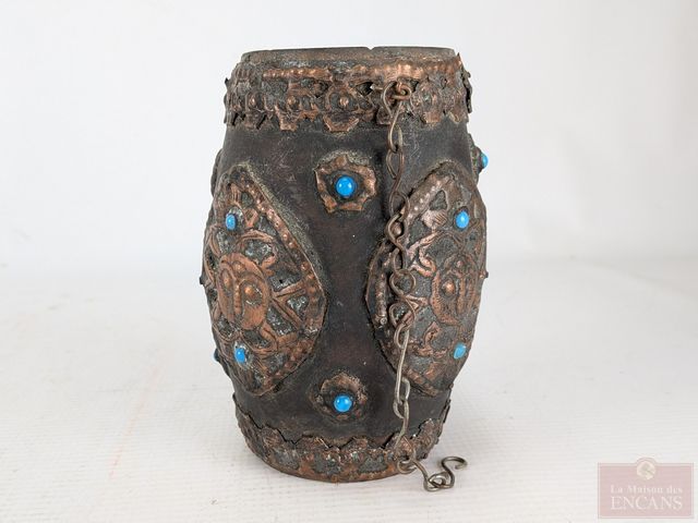 Lot # 171 - Vase de rituel tibétain en bois et métal, circa 1950, mesurant 5 pouces de hauteur SOLD