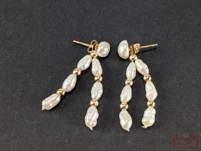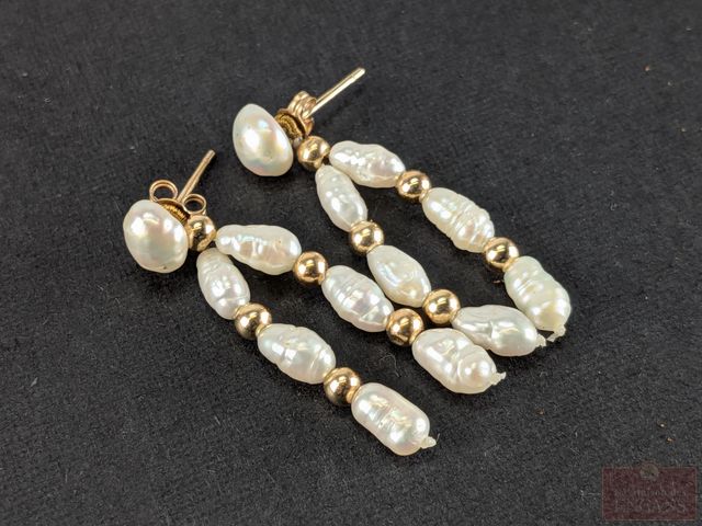 Lot # 214 - Paire de boucles d'oreilles en or 14k avec perles, mesurant 1.25 pouces de hauteur SOLD