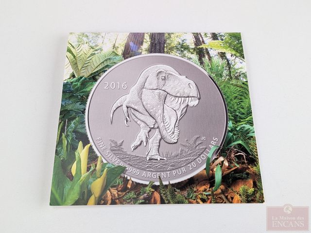 Pièce canadienne de vingt dollars en argent pur 9999 Canada 2016 le Tyrannosaure, encapsulée, sans taxes