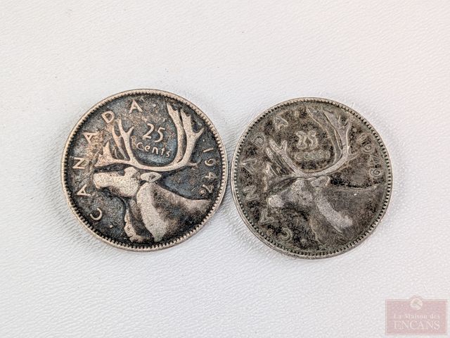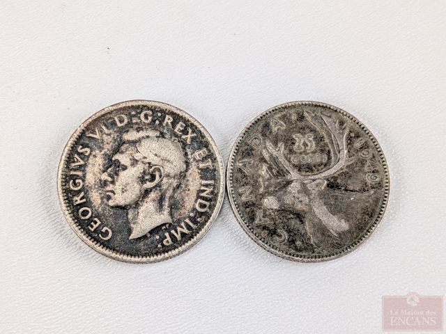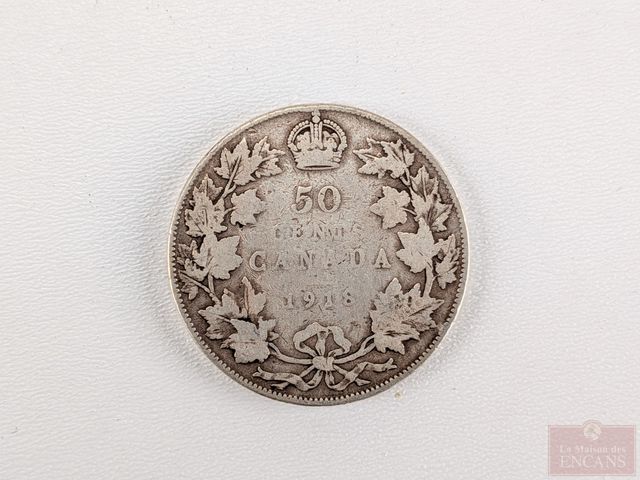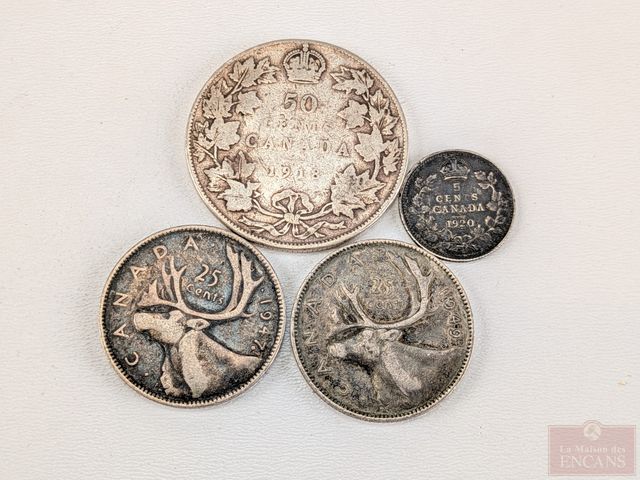 Lot # 220 - Lot numismatique canadien comprenant pièce de cinquante sous 1918, pièce de vingt-cinq sous 1949, pièce de vingt-cinq sous 1947 et pièce de cinq sous 1920 SOLD
