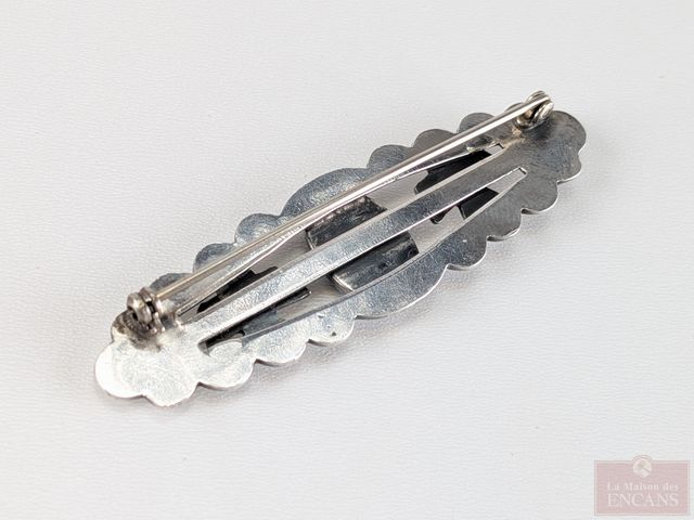 Lot # 198 - Broche navajo en argent sertie d'un jade vert, mesurant 2.75 pouces de largeur SOLD