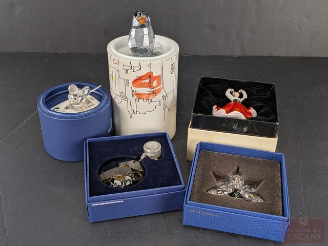 Lot # 160 - Lot de figurines en cristal Swarovski dont la souris, le pingouin mesurant 2 pouces de hauteur, dans leurs boites d'origines, ainsi qu'une figurine en porcelaine Royal Doulton SOLD