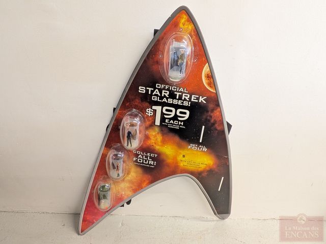 Panneaux publicitaires Star Trek avec quatre verres de collection, la plus grande affiche mesurant 54 pouces de hauteur
