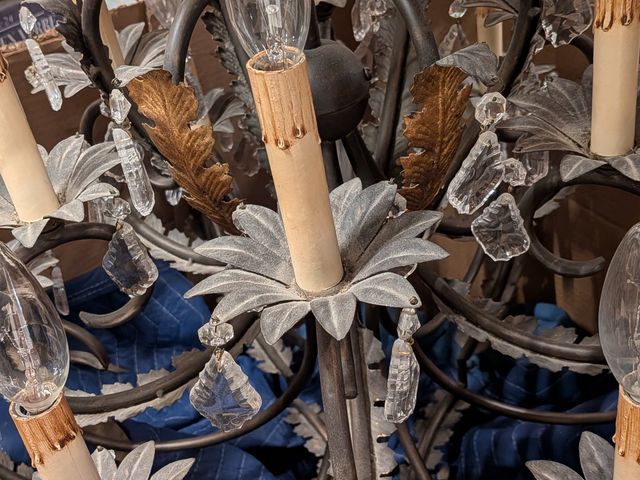 Magnifique suspension de grande taille, style Louis XV avec décors de feuille d'acanthes et de nombreux cristaux, mesurant 36 pouces de hauteur sans la chaine et 30 pouces de diamètre, en très bonne condition et fonctionnelle