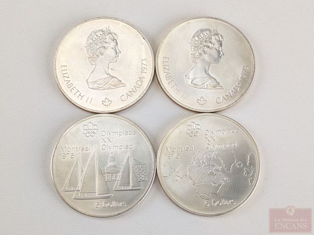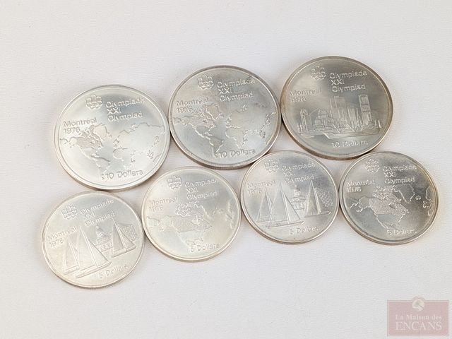 Lot # 91 - Lot de pièces des jeux olympiques de Montréal 1976 en argent, dont quatre pièces de cinq dollars et trois pièces de dix dollars