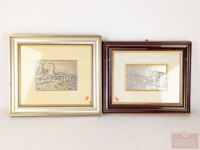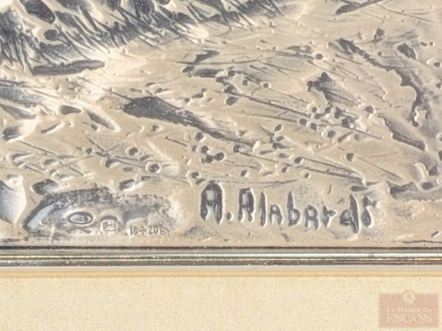 Lot # 136 - Deux plaques d'argent repoussé, la plus grande signée Alabardi et mesurant 5x7 pouces SOLD