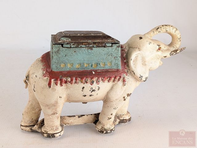 Lot # 61 - Rare distributrice de cigarettes vintage en fonte, représentant un éléphant et mesurant 9 pouces de largeur