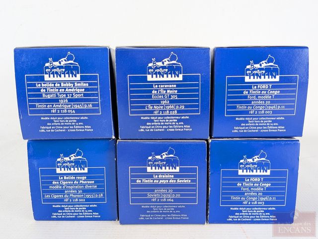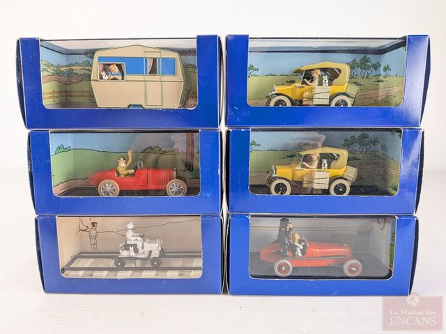 Lot de voitures modèles-réduits de collection Tintin, dans leurs boites d'origines