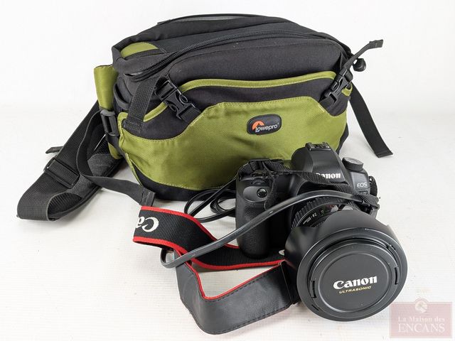 Lot # 142 - Appareil-photo Canon 5D MKII capteur plein format avec objectif Canon EF 24-105 millimètres F4 L IS USN, batterie, chargeur, carte mémoire et accessoires, dans un sac de transport, le tout en excellente condition et fonctionnels SOLD