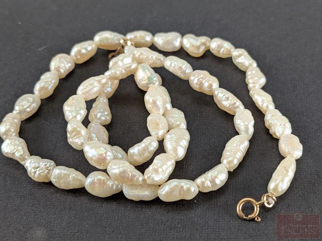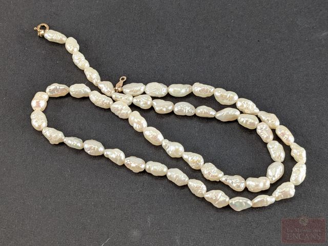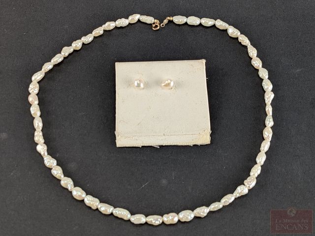 Lot # 193 - Paire de boucles d'oreilles et collier de perles avec fermoirs en or 10k, le collier mesurant 15 pouces de longueur SOLD