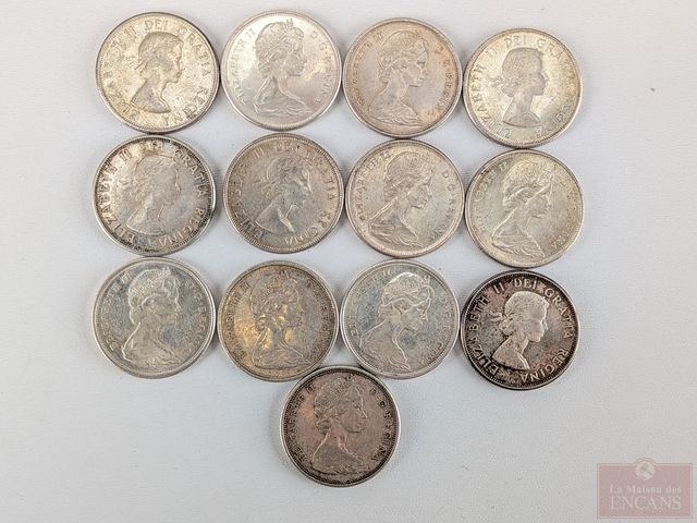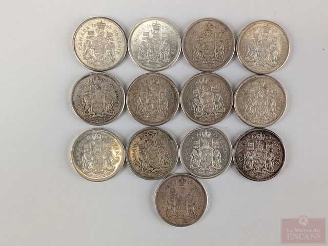 Lot de pièces canadiennes de cinquante sous en argent, datant des années 1960