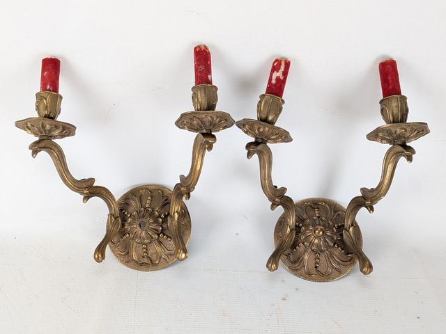 Lot # 154 - Ancienne paire de lampes murales art-nouveau en laiton, mesurant 10 pouces de hauteur SOLD