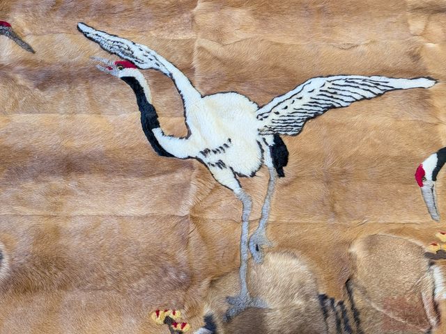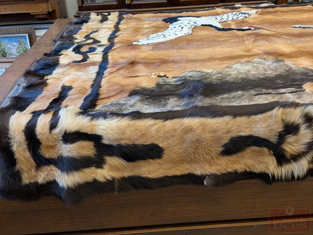 Lot # 146 - Tapisserie chinoise avec estampe de fabrication, minutieusement assemblée à partir de fourrures de divers animaux de la faune chinoise, dont renard et mouton, mesurant 115x63 pouces et provenant de la succession du maire Jean Drapeau SOLD