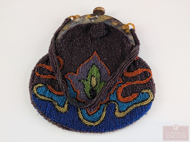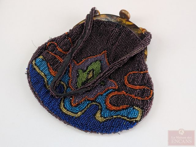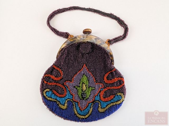 Lot # 217 - Superbe sac de soirée art-nouveau avec fin assemblage de billes, datant des années 1920 et mesurant 7 pouces de hauteur SOLD