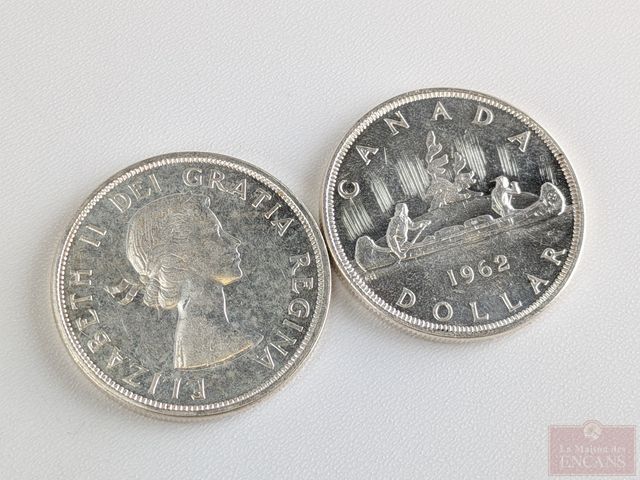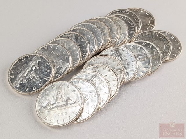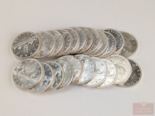 Lot de vingt-deux pièces canadiennes d'un dollar 1960 et 1962 en argent