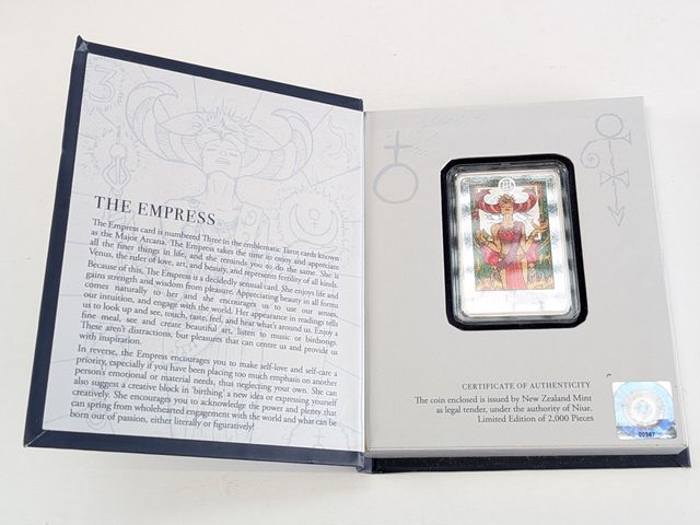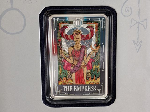 Lot # 187 - Lingot de 1 once d’argent pur 999 – Carte du Tarot L’Impératrice – Nouvelle Zélande – Encapsulé sans taxes