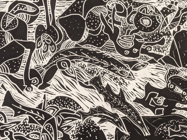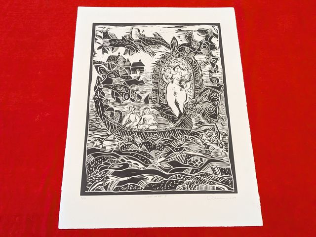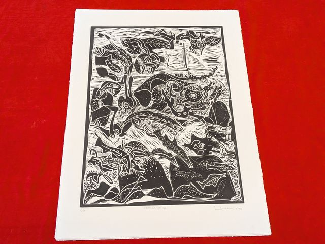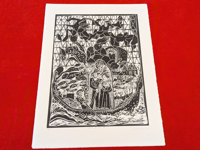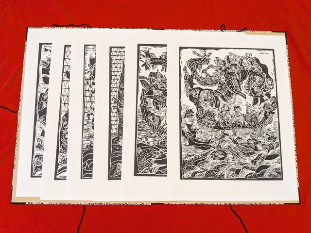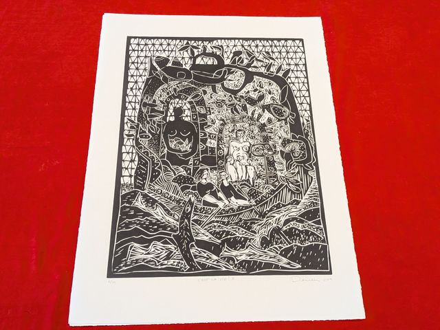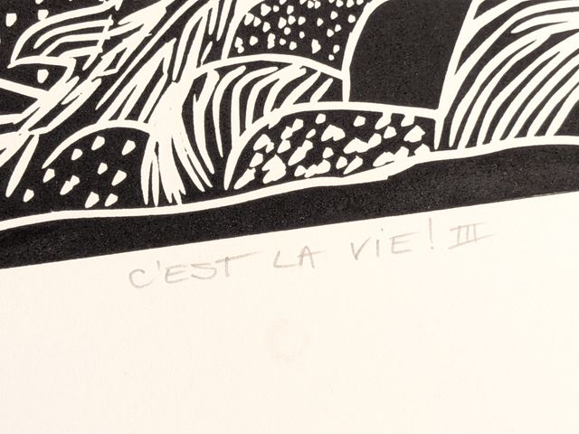 Lot # 122 - René DEROUIN – Linogravures grand format sur papier d’Arches – série complète de ‘C’est la vie!’ toutes signées et numérotées 6 sur 10 à la mine – I – II – III – IV – V – VI – avec pamphlets – l’oeuvre mesurant 23,75 par 17,5 pouces et le papier 30 par 22,5 pouces