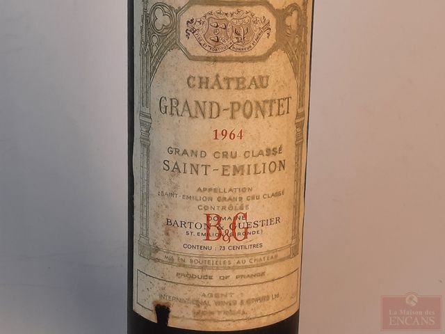 Lot # 36 - Château Grand-Pontet 1964 - Appellation Saint-Émilion contrôlée - France - 750ml - Un montant additionnel de 10% +TPS/TVQ versé à la SAQ doit être ajouté pour toutes les bouteilles d'alcool vendues
