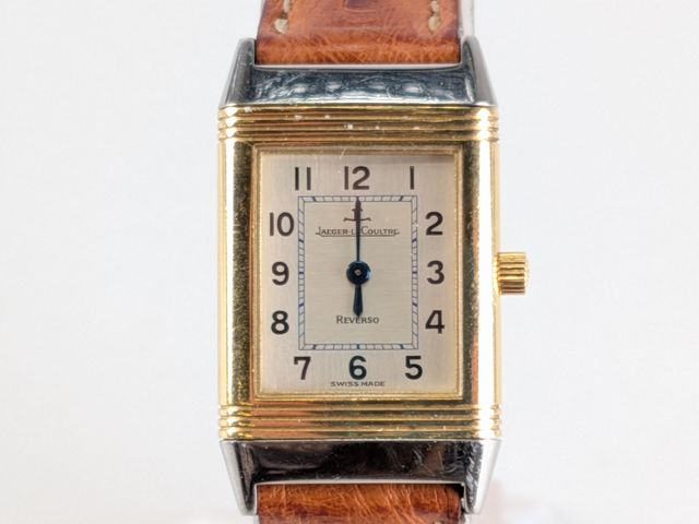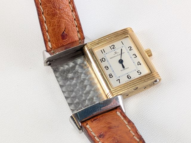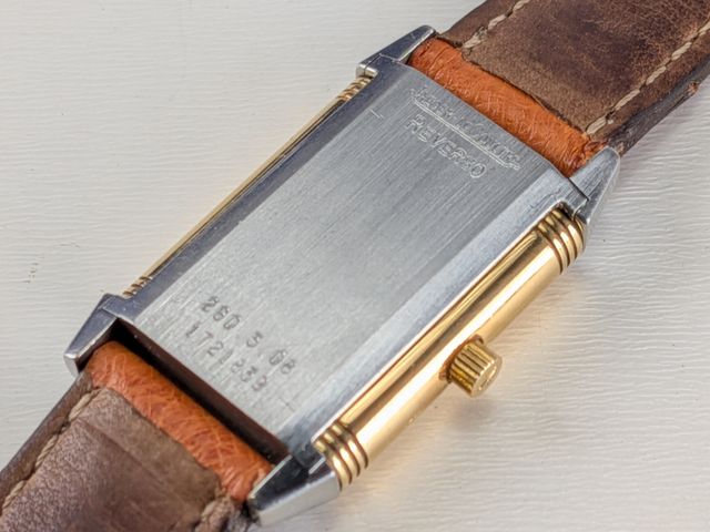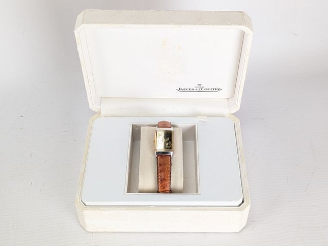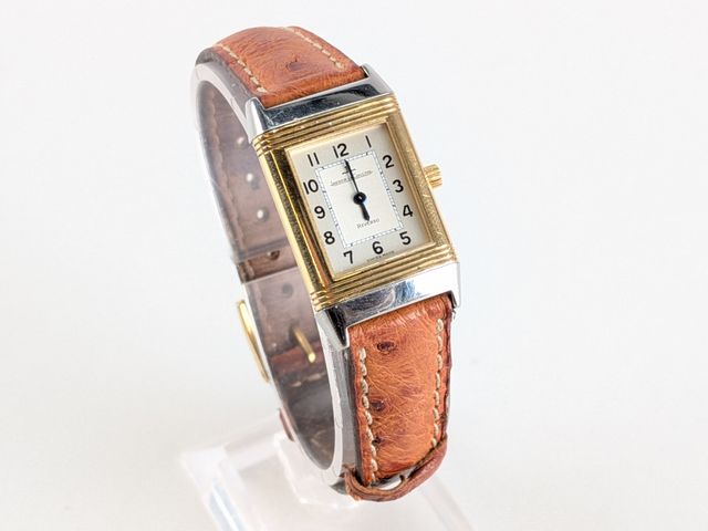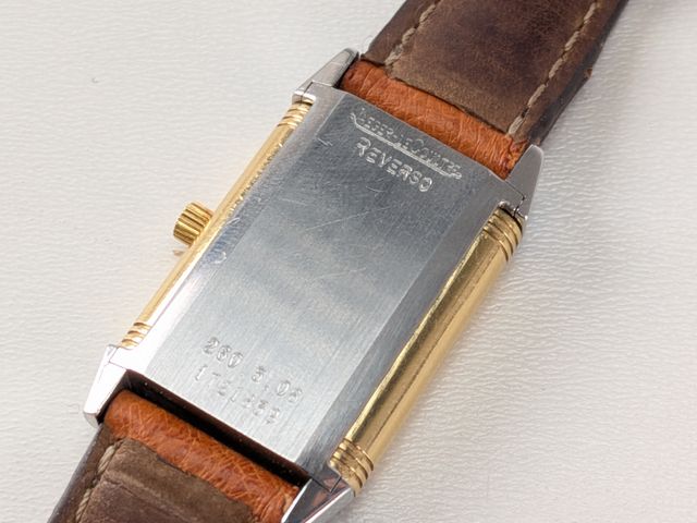 Lot # 145 - Montre Jaeger Lecoultre Reverso référence 260.5.08 numéro de série 1721839, à remontage manuel, boitier deux tons acier et or 18k, mesurant 22 millimètres avec sa couronne signée, bracelet d'origine en cuir d'autruche, dans sa boite, fonctionnelle