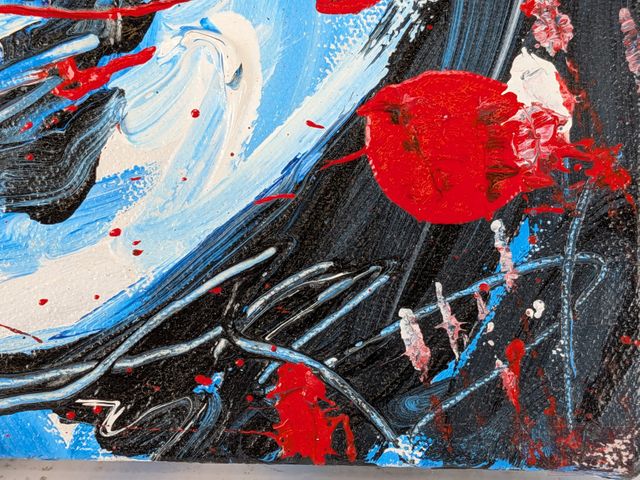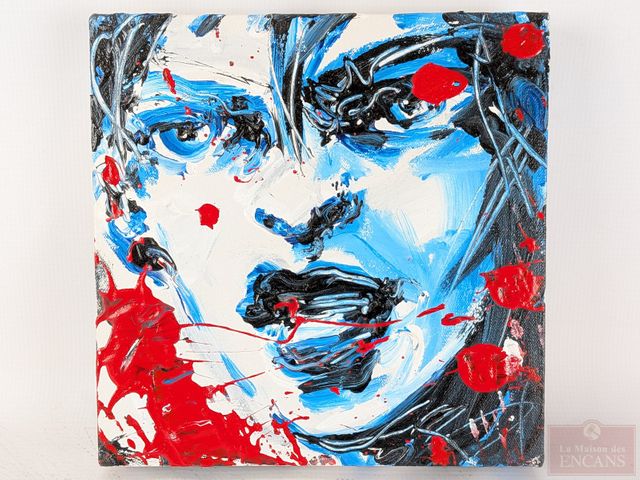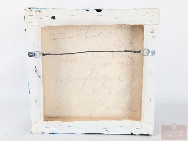Lot # 14 - ZILON – Acrylique sur toile signée – titrée Blanc rouge et bleu – 10x10 pouces