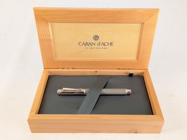 Lot # 186 - Plume Caran d’Ache en argent sterling avec pointe en or blanc 18k – bouchon vissé – dans son coffret avec certificat - faite en Suisse