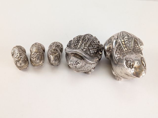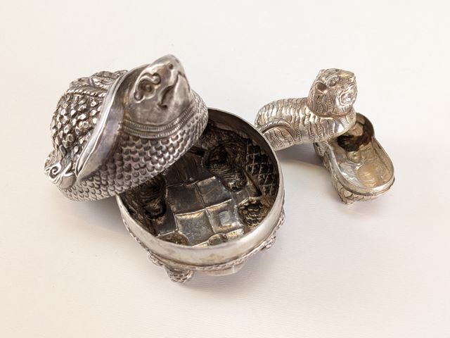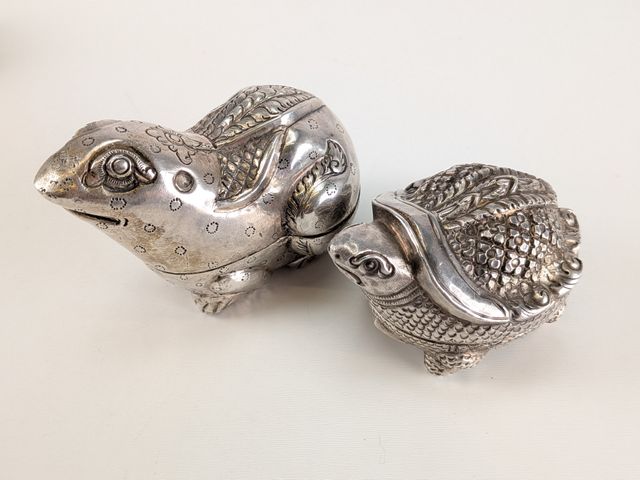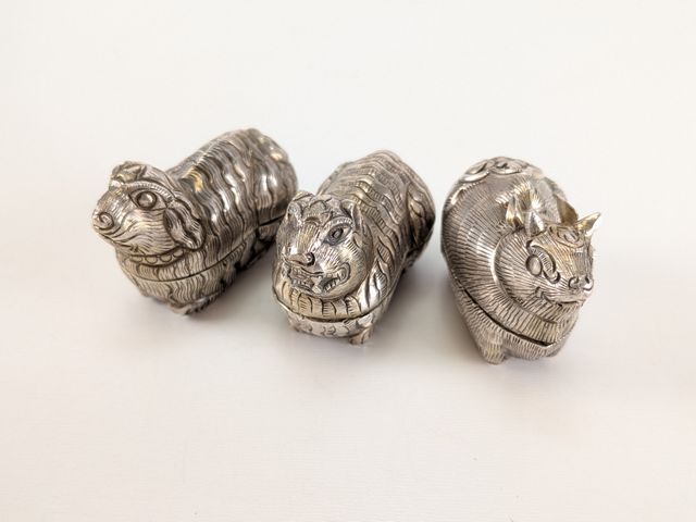 Lot # 128 - Boîtiers en argent khmers à motifs d’animaux – circa 1930 – le plus grand mesurant 3 pouces de largeur
