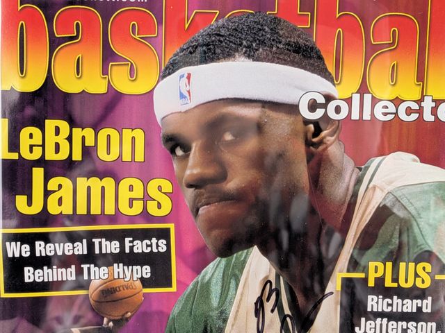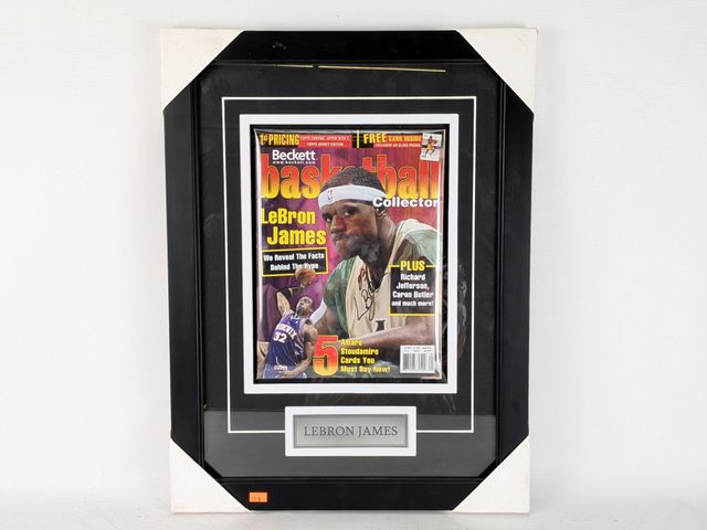 Lot # 117 - Édition collector de la revue Beckett autographiée par Lebron James – scellée et encadrée sous verre – le cadre mesurant 20x15 pouces avec certificat d'authenticité