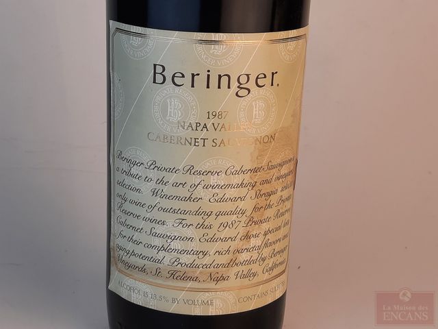 Beringer Napa Valley 1987 Private Reserve - Californie - 13.5% - 750ml - Un montant additionnel de 10% +TPS/TVQ versé à la SAQ doit être ajouté pour toutes les bouteilles d'alcool vendues