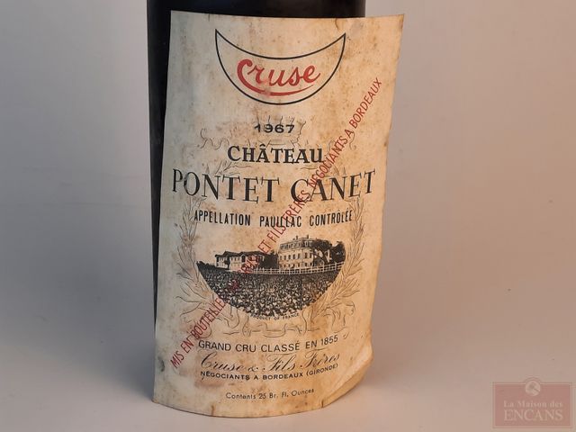 Lot # 35 - Château Pontet Canet 1967 - Appellation Pauillac contrôlée - France - 750ml - Un montant additionnel de 10% +TPS/TVQ versé à la SAQ doit être ajouté pour toutes les bouteilles d'alcool vendues