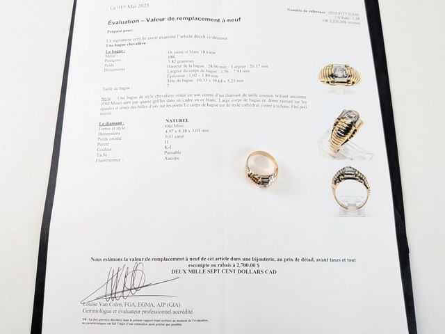 Lot # 86 - Bague art déco en or 18k sertie d’un diamant de 0,41 carat Pureté I1 Couleur K-L - Taille 7,25 – avec certificat évaluant la bague à 2700$