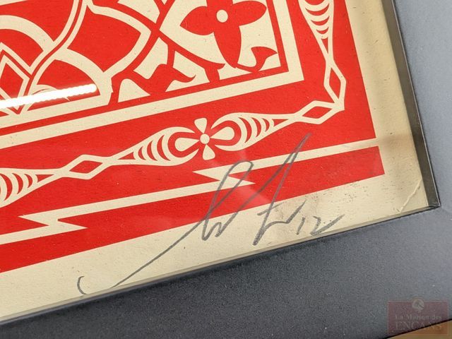 Lot # 147 - Shepard FAIREY – Lithographie signée à la mine – Épreuve d’artiste datée 2012 – Peace Justice Obey – mesurant 23,5 x 17,5 pouces