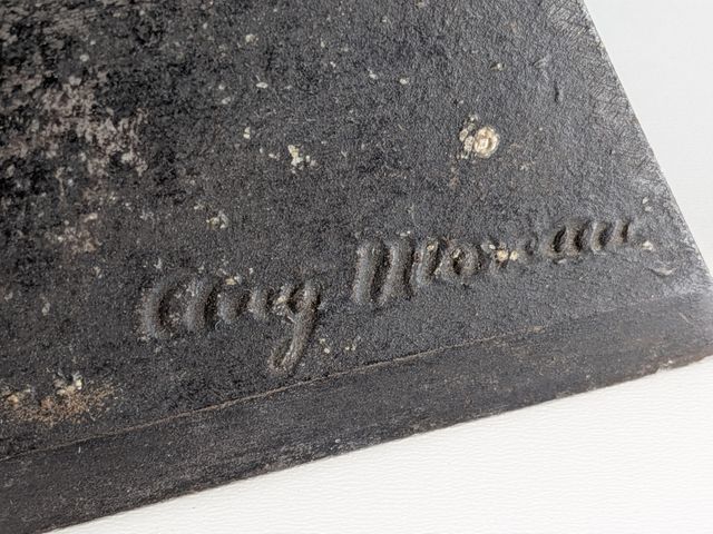 Auguste MOREAU - Régule signé à patine de bronze circa 1890 représentant Cupidon, mesurant 17.5 pouces de hauteur avec estampe de la fabrique de Paris.