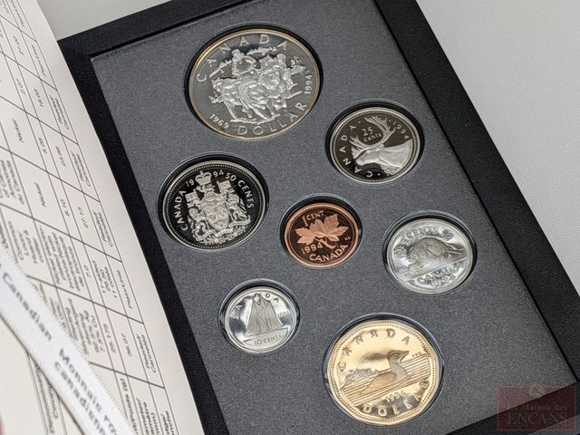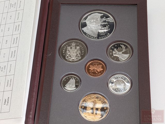 Trois ensembles numismatiques canadiens avec les dollars en argent, comprenant 1993, 1994 et 1995, dans leurs coffrets