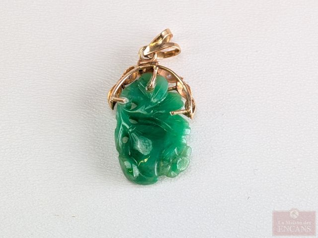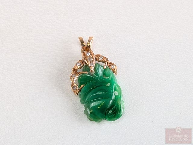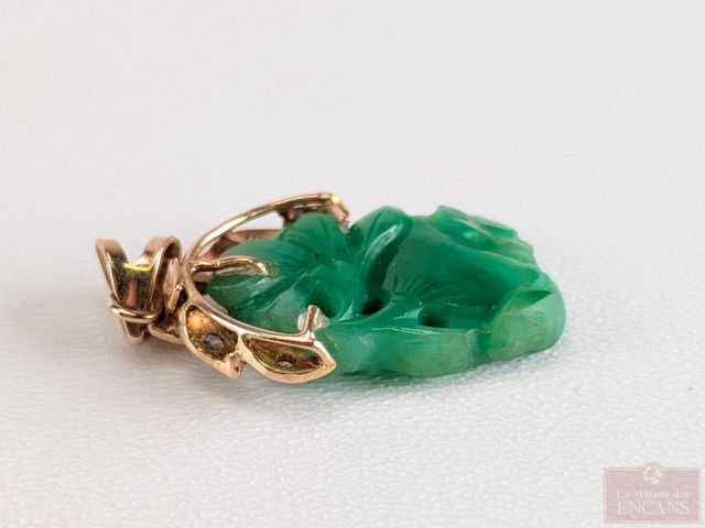 Lot # 232 - Pendentif chinois en or 14k, jade et diamants, mesurant 1 pouce de hauteur