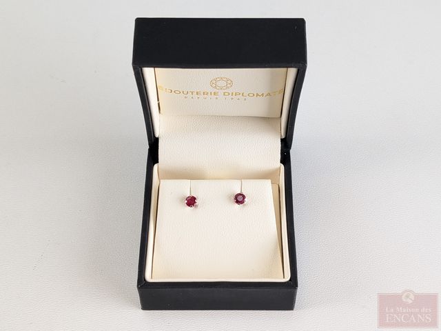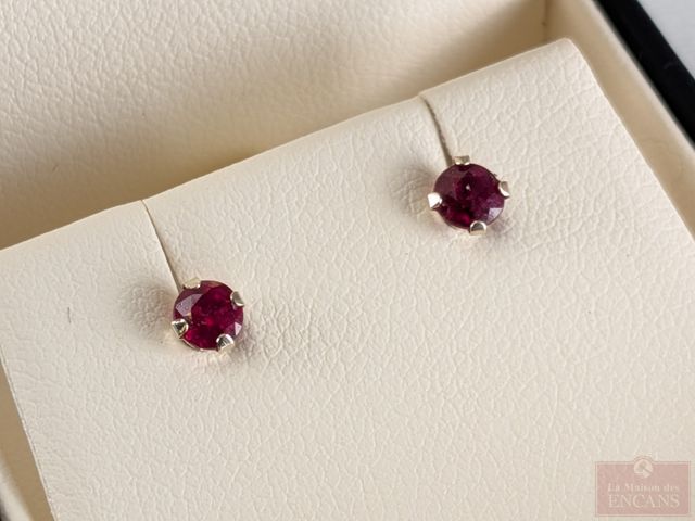 Lot # 116 - Paire de boucles d'oreilles en or 10k sertie de rubis