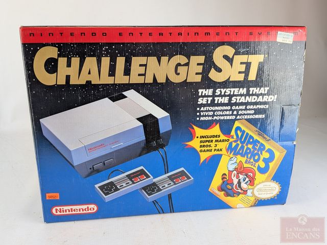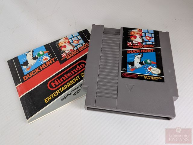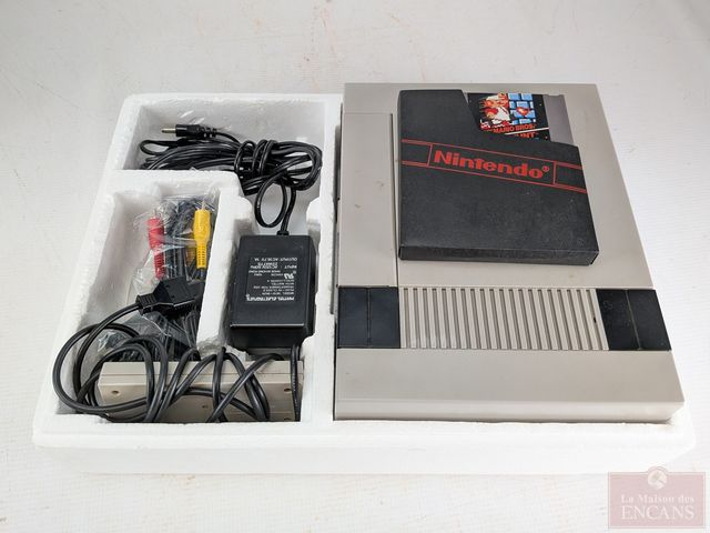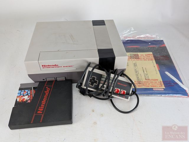 Console Nintendo Entertainment System avec Mario Bros-Duck Hunt, accessoires et documents, dans sa boite d'origine