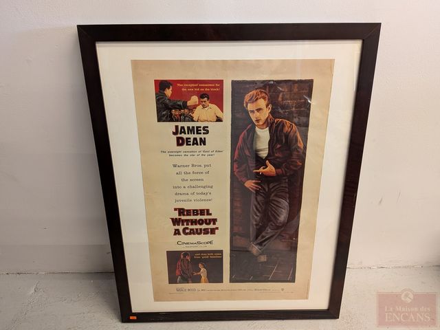 Lot # 57 - Reproduction d'un affiche de James Dean Rebel Without a Cause, réédition imprimée en France et mesurant 27x18 pouces